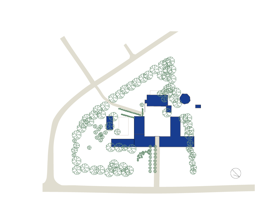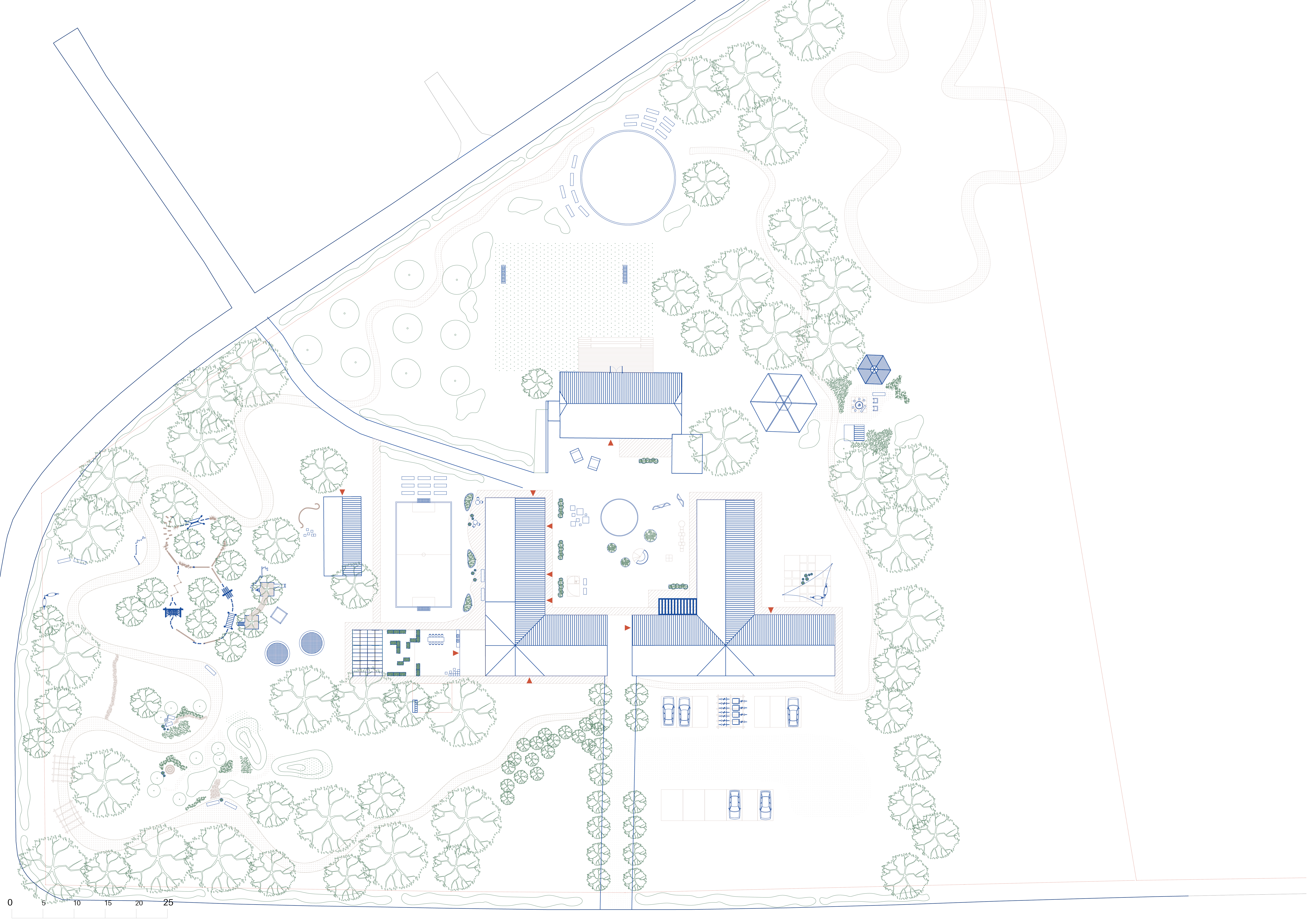 Analyserne og vores research af skolens pædagogiske tilgang blev til konceptet Den Blå Paraply, som masterplanen er designet udfra.